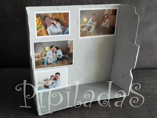 En este caso he realizado una caja de papel maché, decorada con fotos y con la base de foami, para poner dentro a los muñecos. Sirve para colgar en una pared o para posar. Espero que os guste.